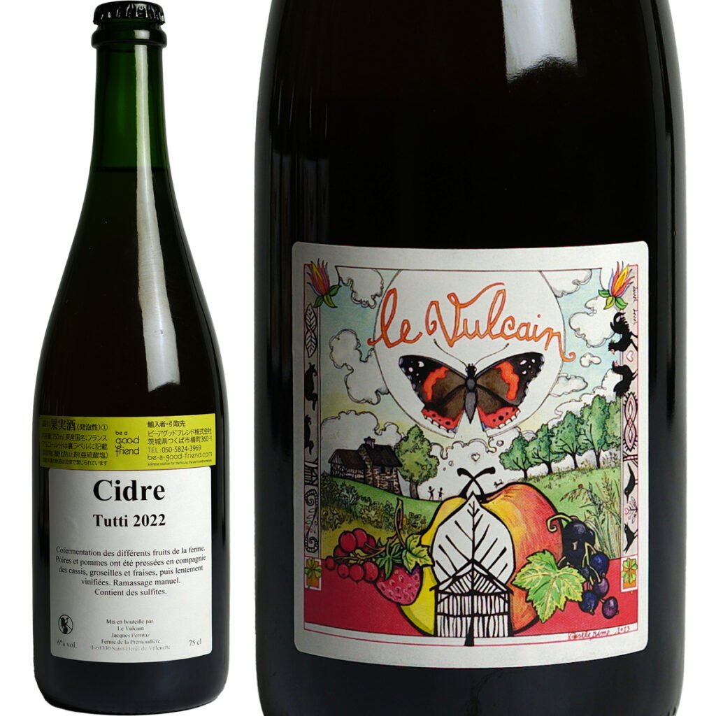 「トゥッティ」は、音楽で用いられる言葉で「全員で演奏する」といった意味。文字通り、ジャックの農園で収穫されるリンゴ、洋梨、カシス、グロゼイユ、イチゴを同時に圧搾して混醸したキュヴェで、彼の農園の恵みが共演しています。