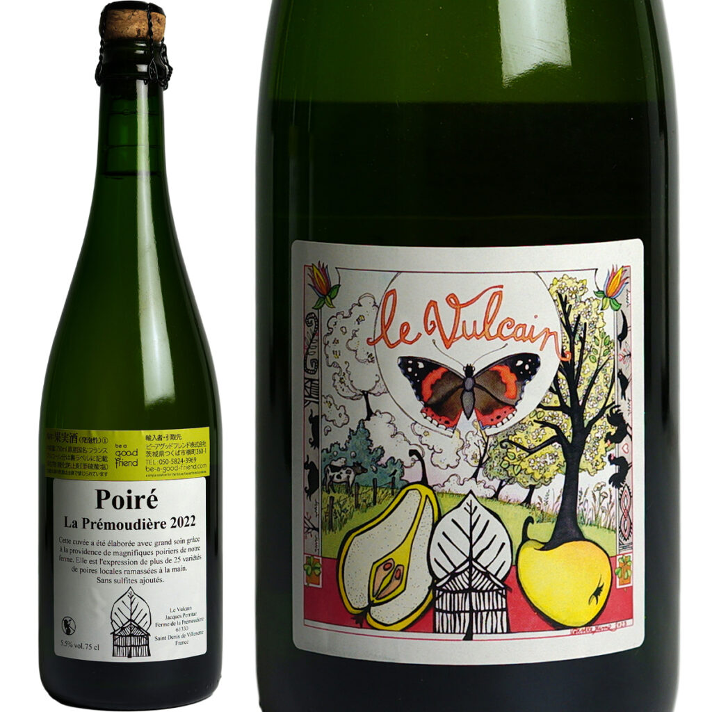 初恋を思わせるような、甘酸っぱさと気品をあわせ持つ特別なポワレ。通常、蒸留酒に用いるという古い樹齢の樹から採れる洋梨を厳選して使用し、飲んだ瞬間にその他のポワレとの差を感じる気高さがあります。味わいはやや冷たさを感じるトーンがあり、清涼感と硬質でシャープなニュアンス、真っ直ぐで美しい酸味が際立ちます。気品と奥深さ、美しさを兼ね備えた一本。ボトルの後半になると、やや大きめの澱が濁りとともに見られるようになります。